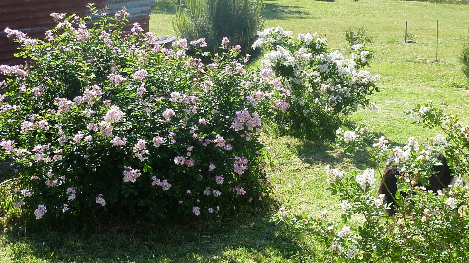 The bush roses are flowering and they are looking a picture. This is how I envisaged them when i planted them three years ago. Essentially the plan is that they form an attractive windbreak in an area that was quite exposed. They are now about a metre high and at least a metre wide and should grow much bigger than this. I am enjoying looking at them and remembering what that space looked like a few years ago.