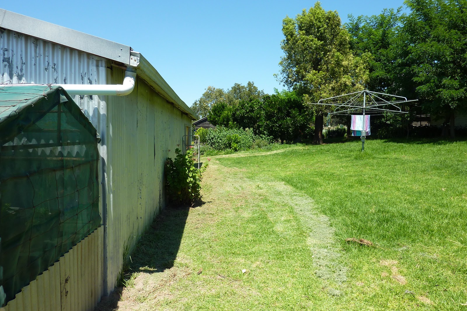 And it has allowed us to clean up all the mess of propagation and dog proofing plants that I had behind the shed. This in turn allows us to easily mow and whipper snip around the shed.